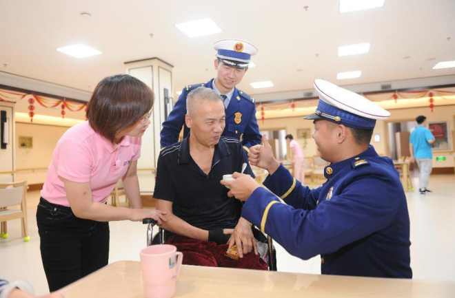 图为启工消防救援站指战员学雷锋到敬老院开展爱心活动