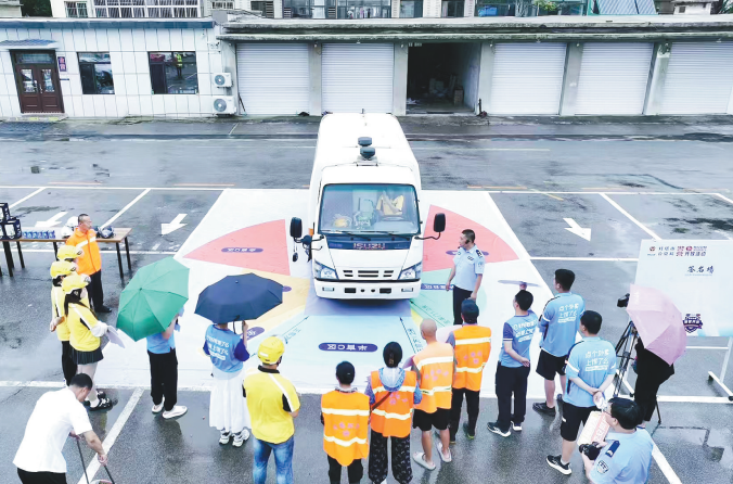 培训中,民警聚焦“一盔一带”,详解安全头盔正确佩戴步骤,并结合真实案例,警示规范使用的重要性。互动体验中,企业代表亲身体验货车盲区,直观感受“司机看不到”的危险,并学习直行、转弯等手势,体会交警指挥的不易。