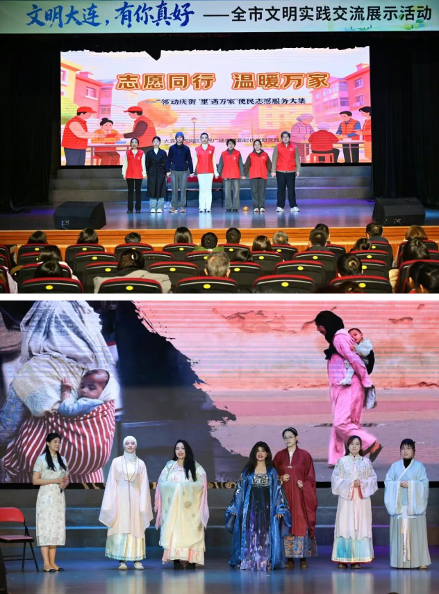 本次活动由市委宣传部、市文明办主办,采用“静态展示”与“动态展演”相结合的模式,全方位、立体化呈现文明实践的生机与魅力。在静态展示区,以精心布置的图文展位为载体,系统梳理和展示各区市县在理论宣讲、惠民服务、群众文化、移风易俗等领域培育的特色品牌项目和创新做法。动态展演环节中,中山区新时代文明实践中心、沙河口区新时代文明实践中心代表介绍了“文明实践+”“以赛促干”等经验做法。金普新区得胜街道新时代文明实践所“村BA”、西岗区人民广场街道新时代文明实践所“‘邻’动庆贺‘里’遇万家”便民志愿服务大集、甘井子区移风易俗主题小品《彩礼风波》等现场表演,充分彰显了大连市文明实践工作的创造力、感染力和深厚的群众基础。